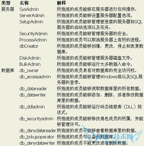 服务器和数据库角色都有预先定义的类别,我们把它们列在表格A里。