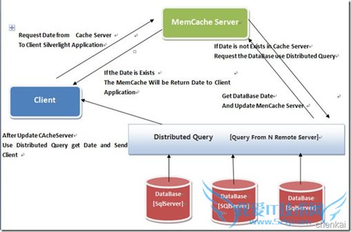 如上截取系统架构中关于数据与缓存流向中涉及的分布式查询业务, 当我们从客户端Client发起请求数据时。 首先检查MemCache Server缓存服务器是否有我们想要数据。 如果没有我需要查询数据库。 而此时数据要求查询多个远程服务器上多个数据库中表, 这时利用分布式查询。获得数据 然后更新我们在缓存服务器MemCache Server上数据保持数据更新同步, 同时向客户端Client直接返回数据。那如何来执行这一系列动作中最为关键分布式查询?