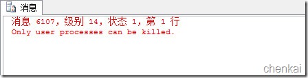“Only use Process can be Kill ”在SQL Server2005 只有只有用户进程才能Kill掉。