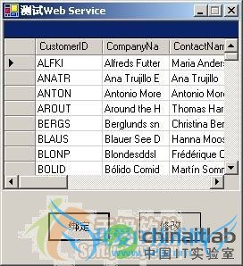 12. ÖÁ´Ë, ¡¾TestWebService¡¿ÏîÄ¿µÄÈ«²¿¹¤×÷¾ÍÍê³ÉÁË£¬µ÷ÓÃWeb ServiceÊDz»ÊǺܼòµ¥¡£´Ëʱµ¥»÷¿ì½Ý¼üF5ÔËÐгÌÐòºó¡£µ¥»÷³ÌÐòÖеġ¾°ó¶¨¡¿°´Å¥¾Í»á¶Ô³ÌÐòÖеÄDataGrid×é¼þʵÏÖÊý¾Ý°ó¶¨£¬µ¥»÷³ÌÐòÖеġ¾Ð޸ġ¿°´Å¥£¬Ôò³ÌÐò»á¸ù¾ÝDataGridÖеÄÄÚÈÝÀ´¸üÐÂÊý¾Ý¿â£¬Í¼05¾ÍÊÇ¡¾TestWebService¡¿µÄÔËÐнçÃæ£º