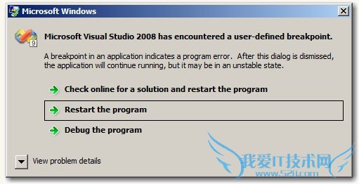 点击 “Debug the program”,将创建一个新的 Visual Studio 实例。你就能够调试控件的编辑器了。原来的运行Visual Studio将锁定的(至少在我这里是这样的),你不得不去终止。由于欠缺自定义服务器控件编辑器的文档,这是非常宝贵的去寻找和了解什么被传递了,发生了什么。