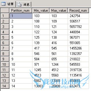 这同样是另外一个生产环境中的真实数据,这个分区方式的特点就是分区的记录数不太均等,而我们前期需要做的就是通过划分每个分区中ClassId的值来尽量均衡分区中的记录数,所以可以看到最小与最大值跨度区别是比较大。