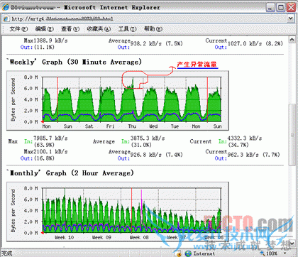 报警消息表明主机61.154.105.100在10:59的这个时间负载过大。而这个主机正好是tomcat服务器,看来问题就在这个上面.为了近一步确认自己的想法,我来查看一下网络流量:
