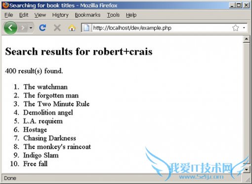图 1 展示了您可能看到的输出 — 匹配关键字 “robert crais” 的所有图书列表: