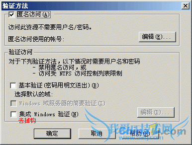 在IIS中打开web01站点属性,选择目录安全性→匿名访问和验证控制→编辑,去掉"集成Windows验证"前的钩,再编辑匿名访问使用的帐号,设置匿名访问帐号为web01(web02站点也一样设置)。