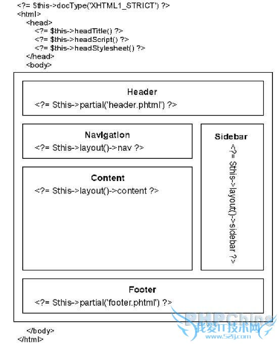 Zend Framework 的文档中用一个视图表示了页面布局的应用。