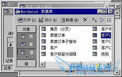 如果打开的窗口或窗体较多,并且把数据库窗口完全挡住了,我们就可以用更容易的方法来显示数据库窗口:只需按下F11(也可以按下ALT+F11),数据库窗口将被前置,如下图所示。