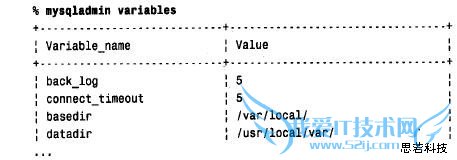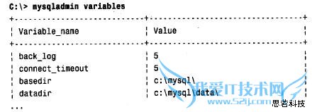 可使用mysqladmin 变量直接从服务器中得到数据目录路径名。在UNIX 中,输出结果类似于如下所示: