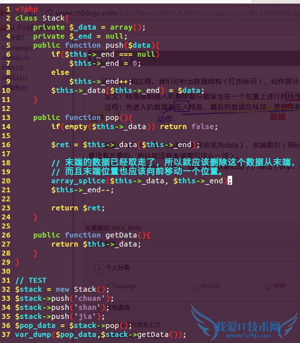 以上是本人对栈的分析理解过程,由于我是一名php coder,所以我用php的角度去分析和编码。