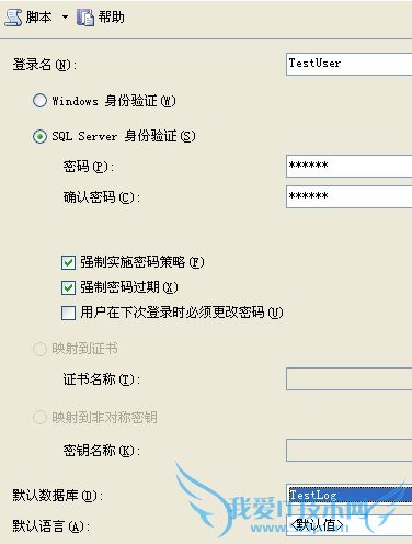 2. 在【常规】选项卡中,如下图所示,创建登陆名,并设置默认的数据库