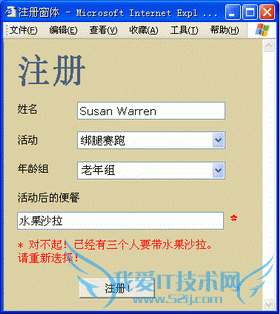 Web是没有状态的,ASP.NET页面也没有状态,它们在到服务器的每个往返过程中被实例化、执行、呈现和处理。作为Web开发人员,您可以使用众所周知的技术(如以会话状态将状态存储在服务器上,或将页面回传到自身)来添加状态。下面我们以图1中的注册窗体为例进行论述。