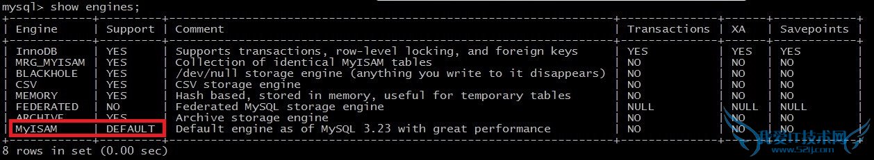 用show engines; 命令可以显示当前数据库支持的存储引擎情况,如图1所示: