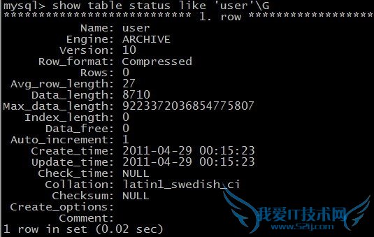 2.3 show table status like ‘tablename’\G显示表的当前状态值