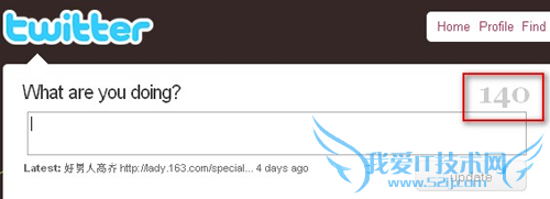 在twitter中有个有趣的功能,只允许用户输入最多140个字符,当用户输入时,twitter会告诉用户,他/她还能输入多少字符。如下所示:
