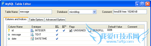 mysql是一个非常强大的数据库系统,最重要的是,可以免费使用在我们的例子中,我们将使用mysql保存我们的消息数据。创建一个新表“message”,其字段如下所列: