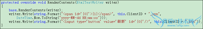到这里大家了解了自定义控件如何呈现在页面上。我们再新建一个类TipTime2,把依旧重载TagKey为DIV,然后重载RenderContents,显示一个span标签与一个input标签。