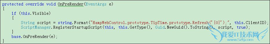 在《道不远人 深入解析ASP.NET2.0控件开发》这本书中,注册脚本文件的代码是放在OnPreRender方法中,但是实际应用中我发现,如果将自定义控件放在UpdatePanel控件中,就会引发一些问题,所以我都放在OnLoad方法中去注册脚本文件。