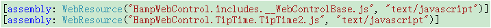 接下来需要声明所需的资源文件,严格按文件夹的结构来命名。这里注册了2个JS文件:公用JS文件__WebControlBase.js与控件专用的JS文件TipTime2.js。