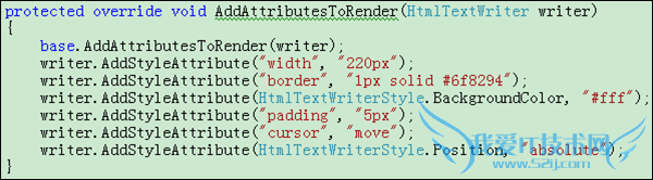 接下来为最外围的DIV加一些样式,重载基类的AddAttributesToRender方法