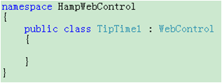 首先新建一个类库项目HampWebControl,再新建一个类叫TipTime1,继承WebControl类。如果不是从已有控件中继承,一般就继承WebControl类,它是所有ASP.NET服务端控件的基类。