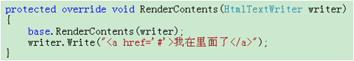 注意看,这时a标签是在DIV外面,如何将它放到DIV里面呢?这就要重载WebControl基类的RenderContents方法
