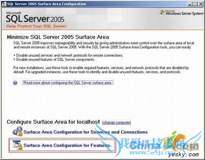 · 转到"Start->Programs->Microsoft SQL Server 2005->Configuration Tools->SQL Server Surface Area Configuration"。