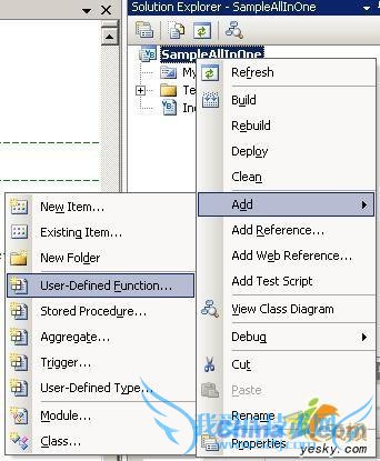 · 使用"Solution explorer",右击"SampleAllInOne"工程并转到"Add->User-defined Function"(以创建一个新的存储函数)(图14)。