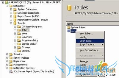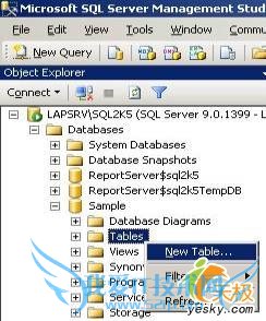 · 使用"Object explorer"打开"Sample"数据库,右击"tables"并选择"new table"(图2)。