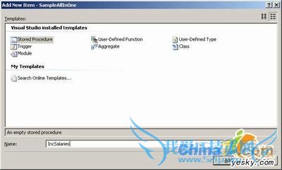 · 之后,出现"Add New Item"对话框。在该对话框内,选择"Stored Procedure"作为模板并输入名字"IncSalaries",最后点击"Add"(图10)。