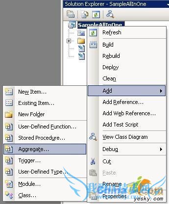 · 使用"Solution explorer",右击"SampleAllInOne"工程并转到"Add->Aggregate"(以创建一个新的聚合函数)(图16)。