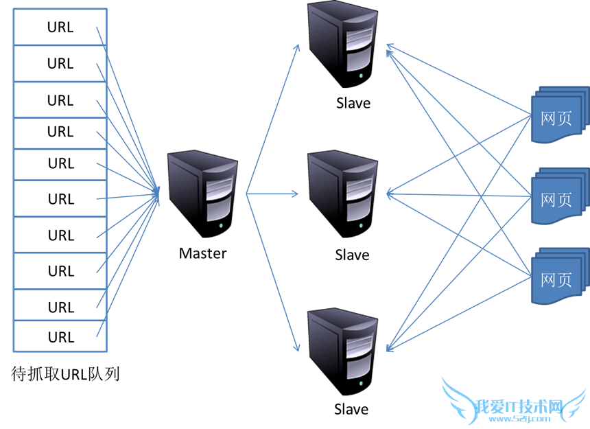 对于主从式而言,有一台专门的Master服务器来维护待抓取URL队列,它负责每次将URL分发到不同的Slave服务器,而Slave服务器则负责实际的网页下载工作。Master服务器除了维护待抓取URL队列以及分发URL之外,还要负责调解各个Slave服务器的负载情况。以免某些Slave服务器过于清闲或者劳累。