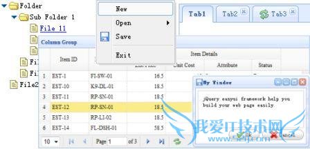 小结:jQuery EasyUI的体验就到这里,还有一些控件这里没有介绍,比如:combobox,splitbutton等等。