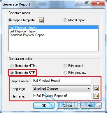 Report→Generate Report...→选择Generate RTF→修改Repor namet→语言选择Chinese→选择文件存放位置→确定