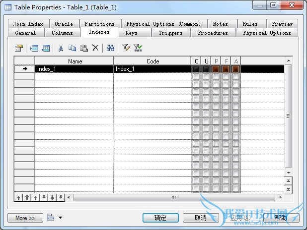 双击表打开属性窗口→选择Indexes选项卡→新建一索引→双击该索引打开属性窗口