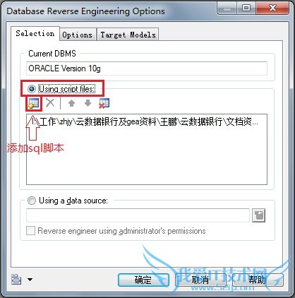 Using script files→点击下方图标(Add Files)来添加sql脚本文件→确定