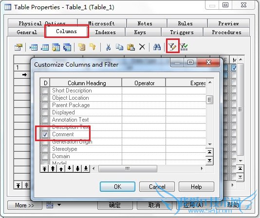双击表打开表的属性窗口→Columns选项卡→单击上排倒数第二个图标(Customize Columns and Filter)→勾选comment