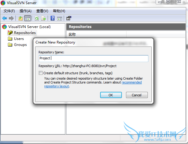 未选中上面的复选框,代表建立一个空的代码库,若选中则会创建三个子目录