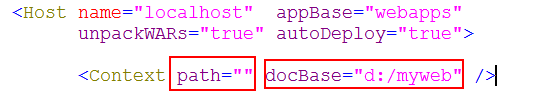 如果你的站点存放在webapps目录下,可以使用相对路径,比如,我们将d:/myweb整个拷到%TOMCAT_HOME%/webapps下,上图的docBase很明显就不需要加上d:/了。