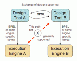 ◆ XPDL是一种基于XML的流程定义语言,其中定义了流程图具体“长相”,主要是为了不同业务流程建模工具之间可以互相交换流程建模图。比如:无论建模工具是否支持BPMN建模,都应该可以把模型保存为XPDL格式,方便与其它建模工具交换。