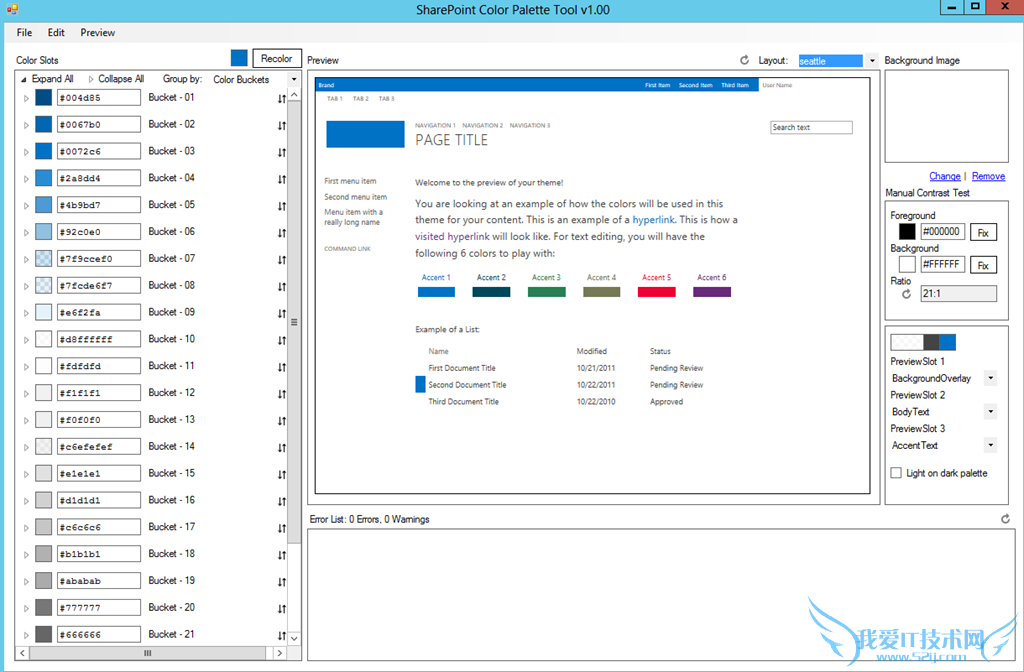 SharePoint开发人员经常会为了开发个性站点配色头痛,而Color Palette工具则解决了这个问题。该工具主要是为创建自定义CSS设计的。