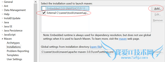 点击Add添加外部maven安装,将刚才安装的maven配置到eclipse: