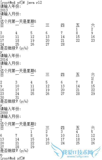 //System.out.println("这个月第一天是星期"+(sum%7+1));