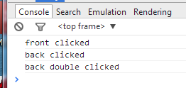 浏览器会先触发front click,然后是back click,再然后居然是back double click。按理说,在back上面只点击了一次,应该不触发double click才对,毕竟第一次click是在front上触发的。
