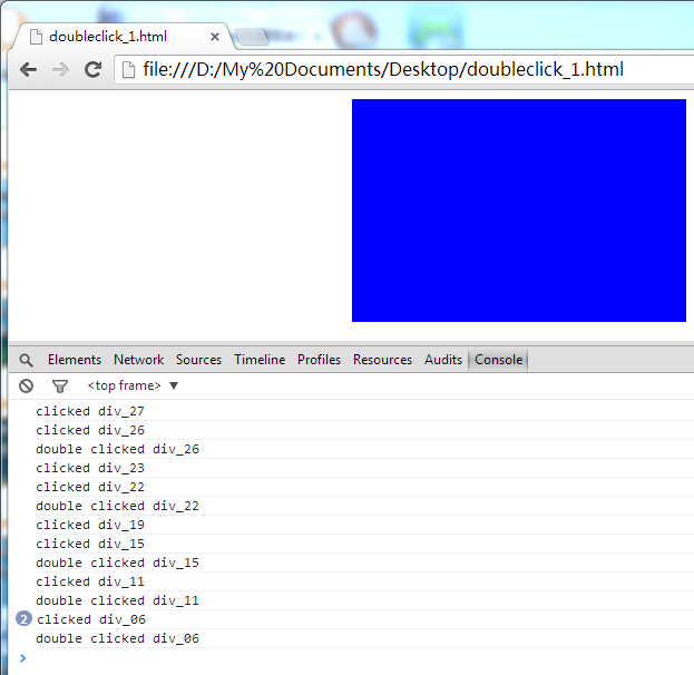 可以看到,div_26、div_22两次双击事件分别是由div27、div26和div23、div22的两次单击触发的。