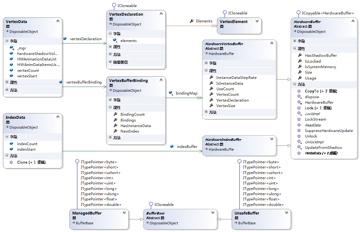VertexData主要包含二个类的实体,一个是VertexDeclaration,另一个是VertexBufferBinding.