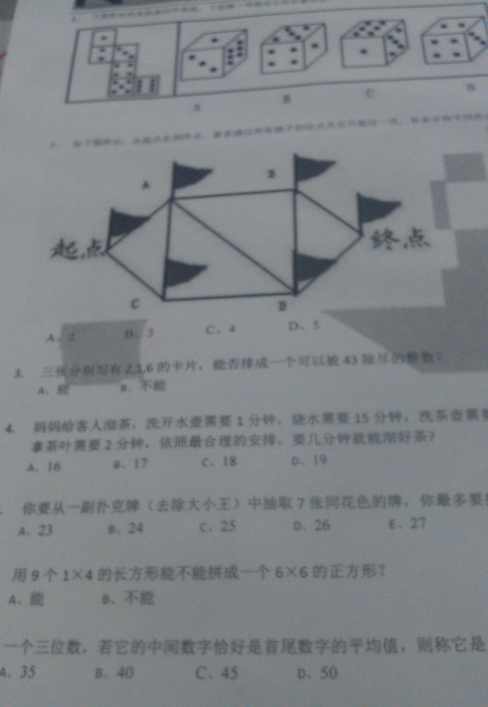3.第三题是用带 2,1,6的三张卡片 能不能组成一个整除43的数,答案是 能 和不能。