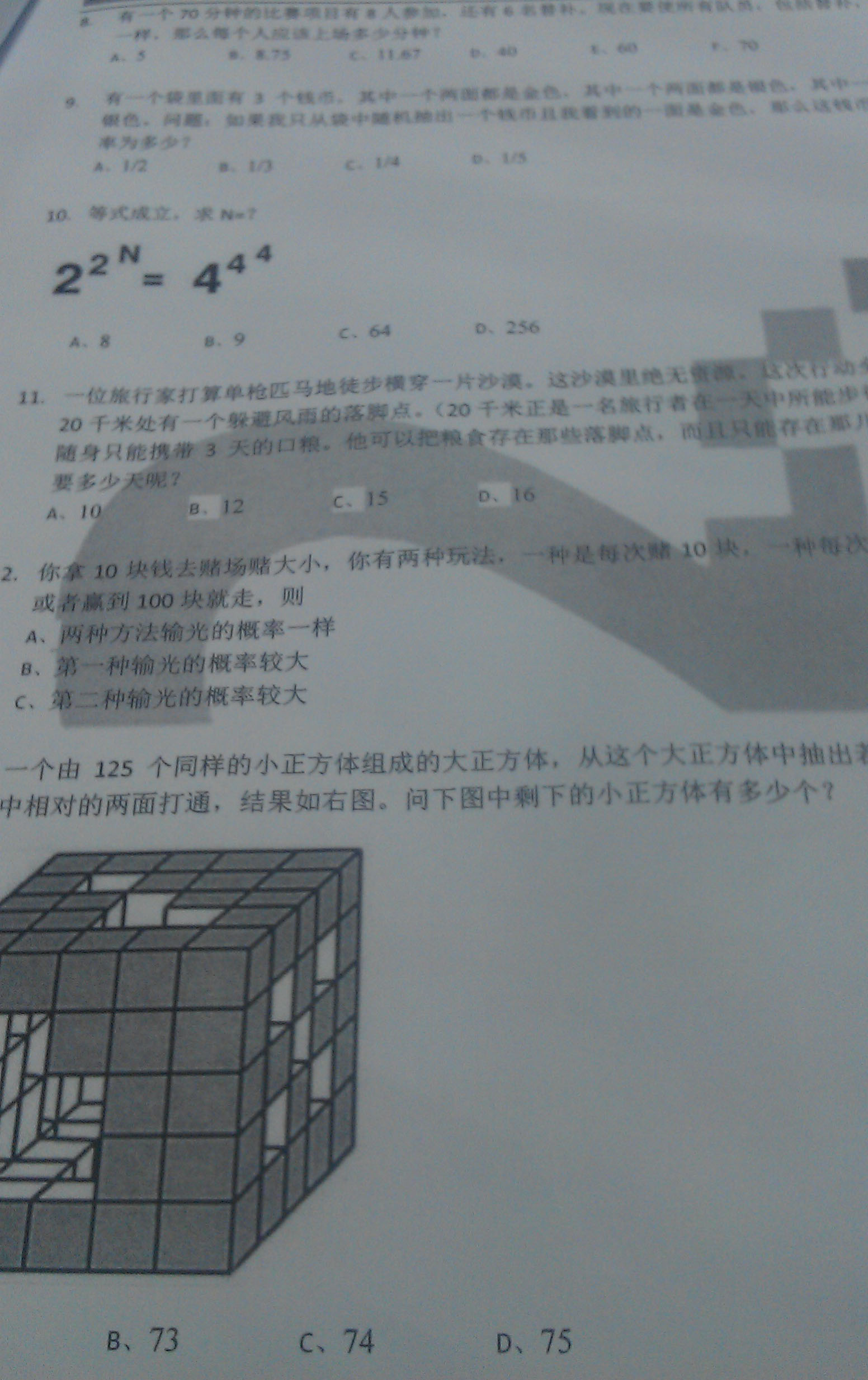智力题满新颖的,最后一题怎么也想不处怎么做,有知道的可以告知。