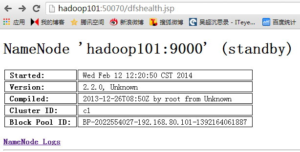 观察cluster1的两个NameNode的状态,hadoop101的状态是standby,hadoop102的状态是active,如下图。