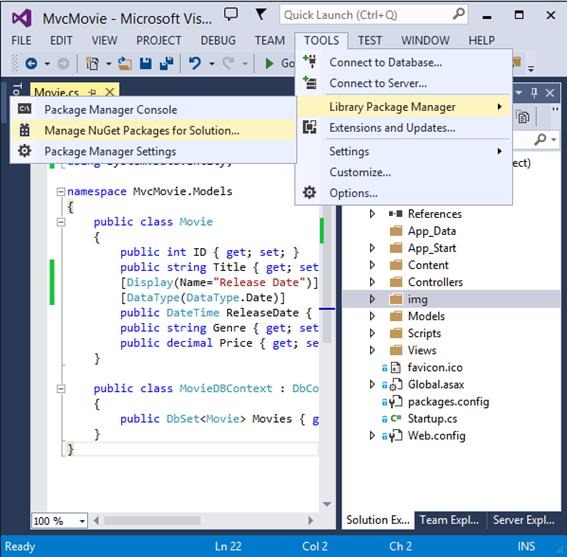 using System; using System.ComponentModel.DataAnnotations; using System.Data.Entity; namespace MvcMovie.Models { public class Movie { public int ID { get; set; } public string Title { get; set; } [Display(Name = "Release Date")] [DataType(DataType.Date)] [DisplayFormat(DataFormatString = "{0:yyyy-MM-dd}", ApplyFormatInEditMode = true)] public DateTime ReleaseDate { get; set; } public string Genre { get; set; } public decimal Price { get; set; } } public class MovieDBContext : DbContext { public DbSet<Movie> Movies { get; set; } } }