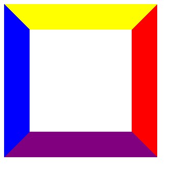 从css很容易看出来, div的边框 border-top, border-right, border-bottom, border-left (上右下左)这三个边框, 都是梯形.